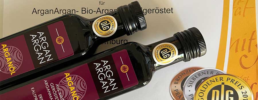 Unsere kaltgepressten ARGANARGAN Bio-Arganöle haben erfolgreich an der Internationalen DLG-Qualitätsprüfung der Deutsche Landwirtschaft Gesellschaft teilgenommen und sind mit GOLD und SILBER ausgezeichnet worden.