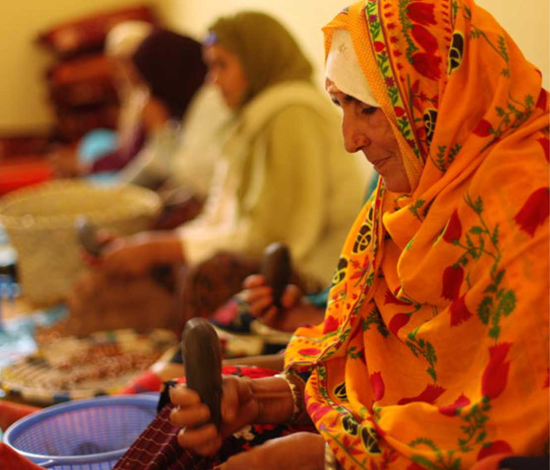 Die Herstellung von Arganöl ist seit jeher Sache der Frauen, die entweder in den Familien oder meist in Kooperativen gemeinsam verrichtet wird. Sie erfordert viel handwerkliches Geschick und harte körperliche Arbeit.