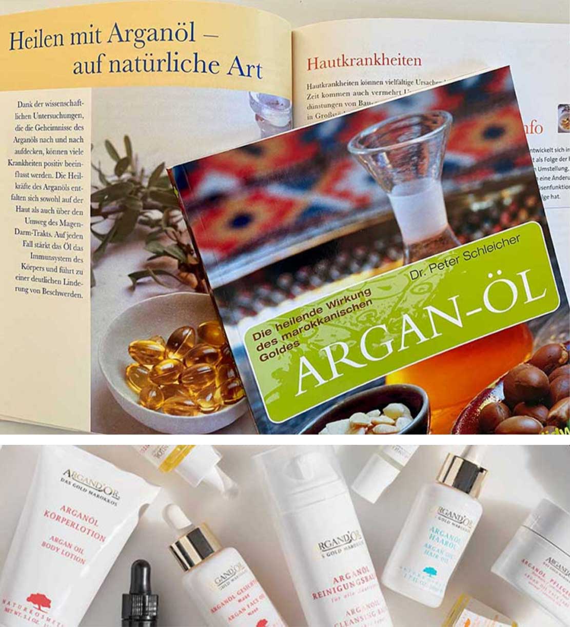 Und auch ein renommierter Immunologe in München interessierte sich für das „Gold Marokkos“. Dr. med. Peter Schleicher, Leiter des Instituts zur Erforschung neuer Therapieverfahren chronischer Erkrankungen schrieb 2004 ein Buch über die zahlreichen positiven innerlichen und äußerlichen Wirkweisen von Arganöl.